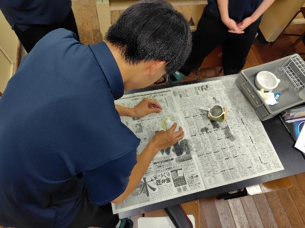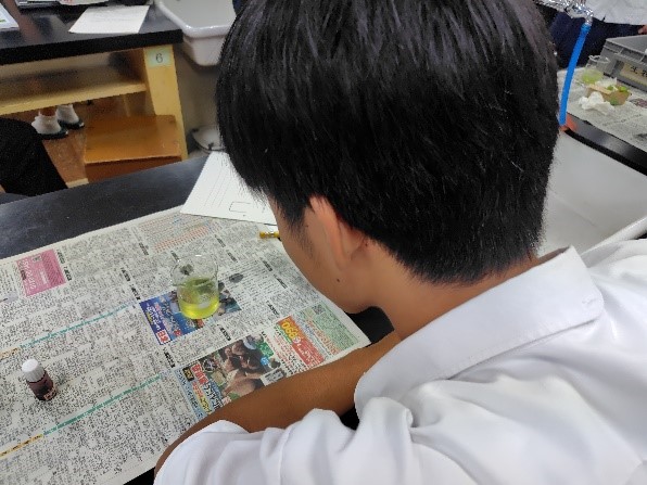 慣れない操作に戸惑いながらも、DNAが析出しているビーカーを見入っている生徒もいました。生物を形作っているDNAについて興味を持っている様子でした。