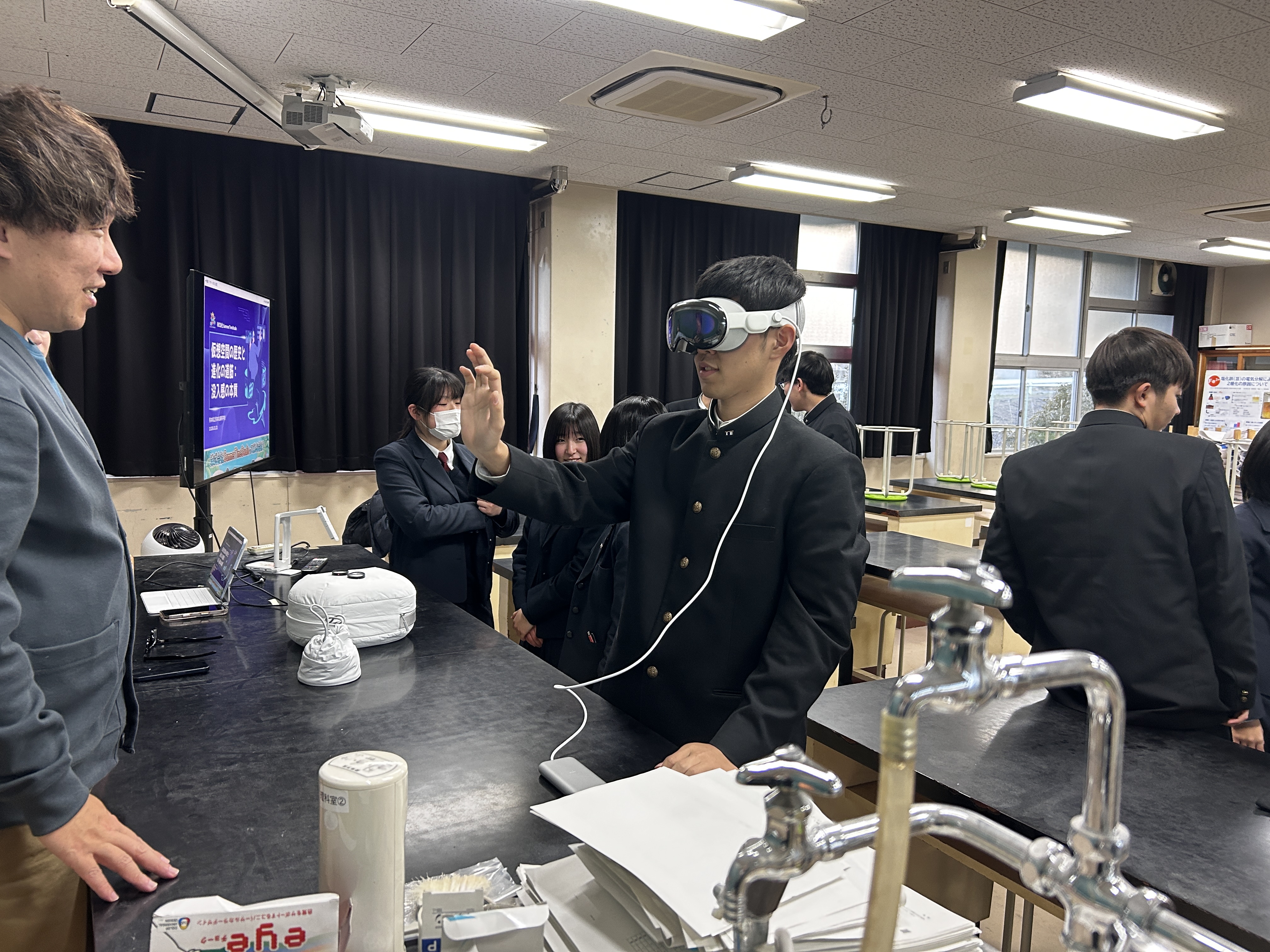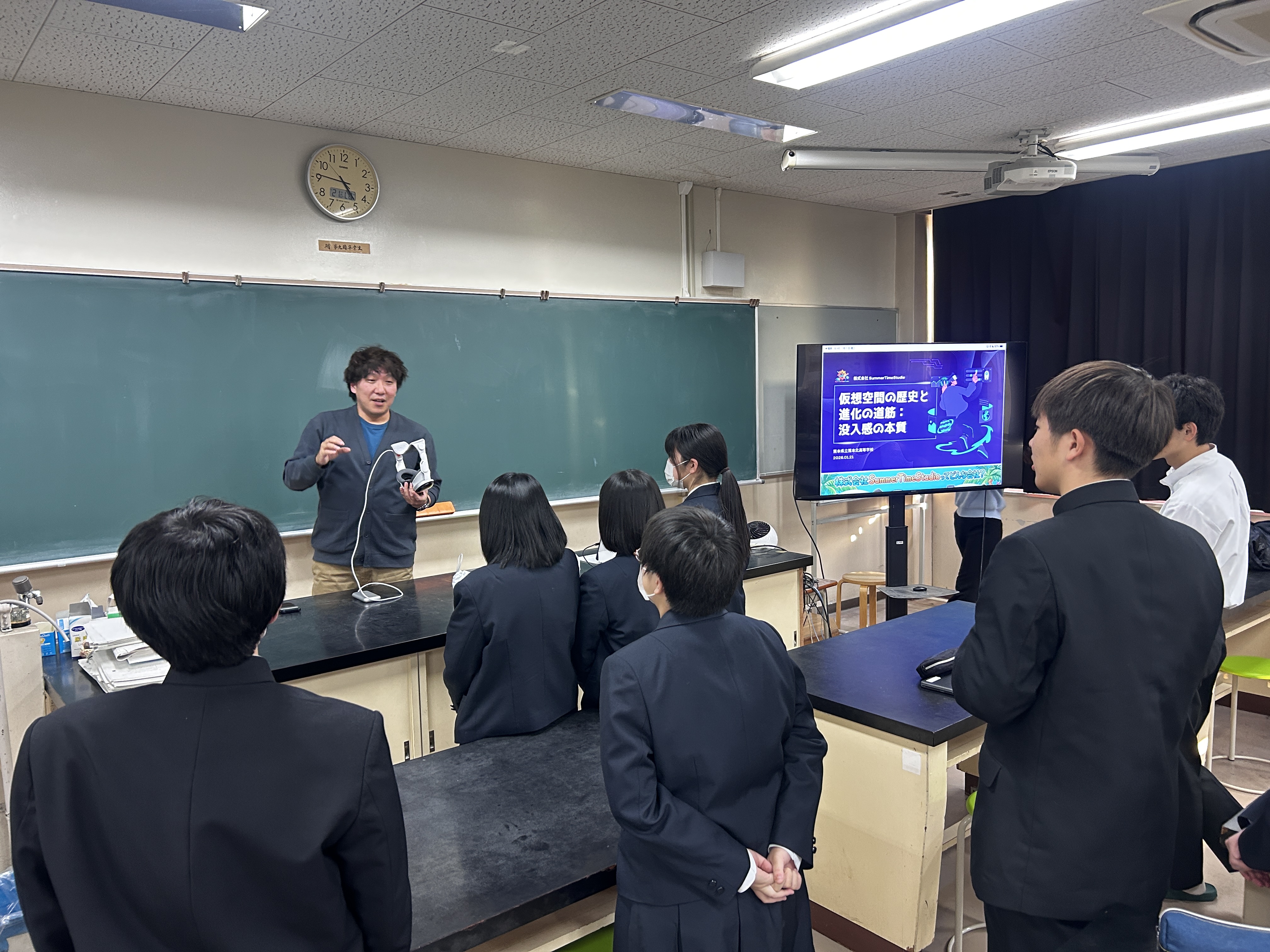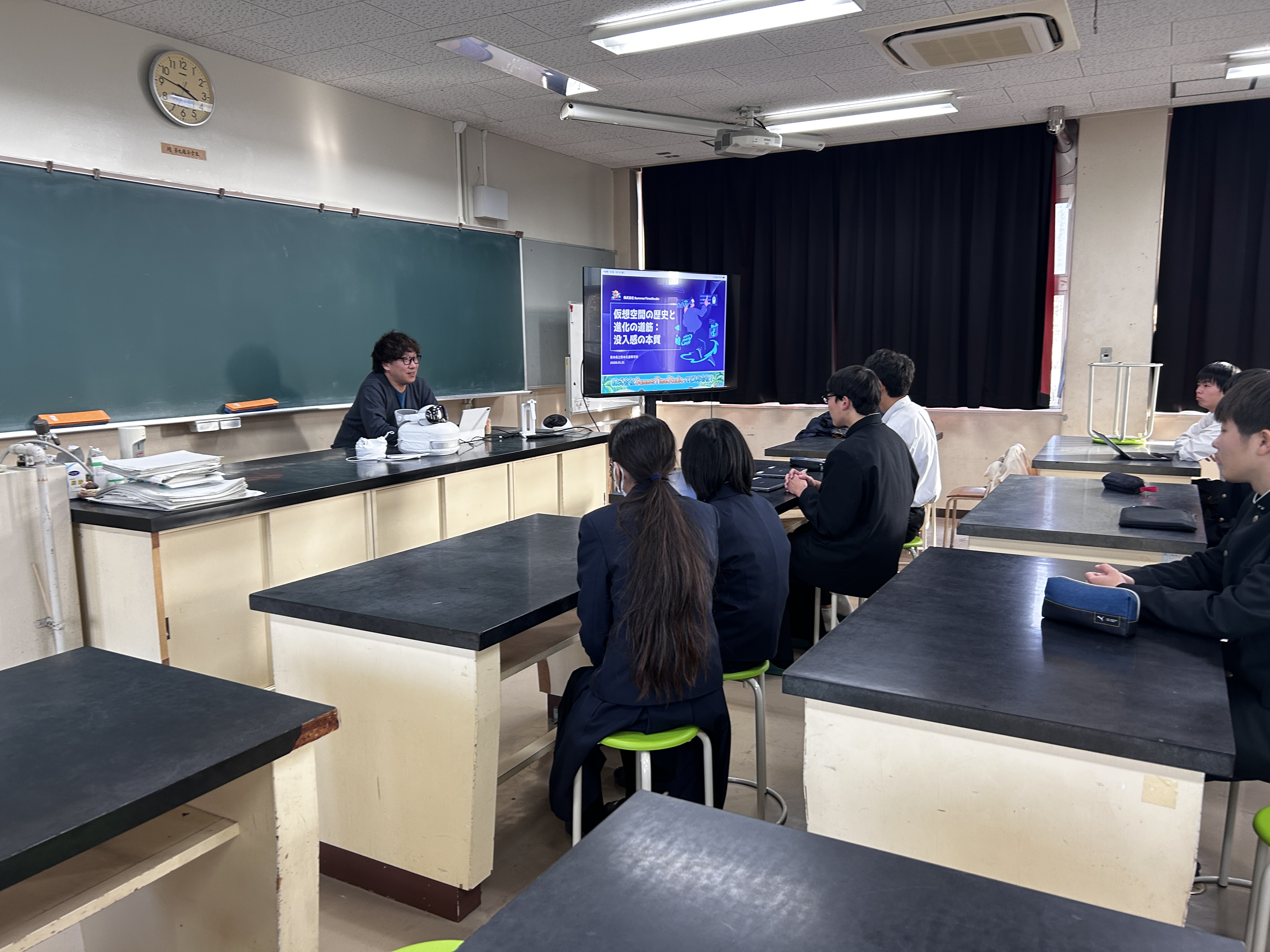 特に生徒は、没入感を高めるための技術に関してのお話しを聞き入っていました。立体視や精密なトラッキングといった技術がどのように没入体験を支えているのかを学ぶとともに、3D酔いといった課題や、ユーザーにどこまで多様なフィードバックを与えられるかなど、没入感向上の難しさについても考える機会となりました。