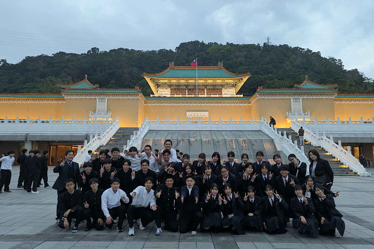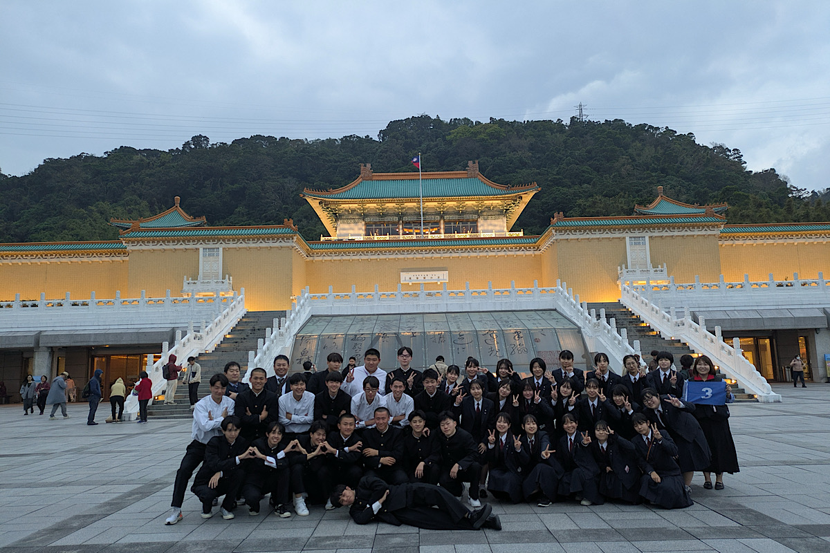 12月18日(水)に2年生が、台湾へ修学旅行に出発しました。 4、5、6、7、S組と1、2、3、E組の2便に分かれて福岡空港から台湾桃園国際空港へ向かいました。出入国の手続も生徒それぞれが行い、まずは故宮博物院を訪問しました。 夕食を終え、ホテルに無事到着しました。体調不良者もおらず、順調に1日目を終えました。 明日は中正高級中学、TSMC台積新館、静宜大学などを訪問します。 1組〜3組の様子です。