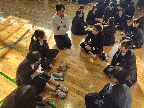 今年度から発表会は普通科、英語科、理数科合同で実施しました。SSH委員による司会進行のもと、まずはアイスブレイクを行い、初めは緊張していた生徒も、話し合いながら協力して取り組む中で打ち解けていきました。発表は前半後半と分かれて、各班の全員の生徒が発表しました。時には鋭い質問があるなど、活発な質疑応答が行われました。他学年の先生方も発表を聞かれ、今回は東京理科大の渡辺教授にご参加いただき、様々な指導助言をいただきました。