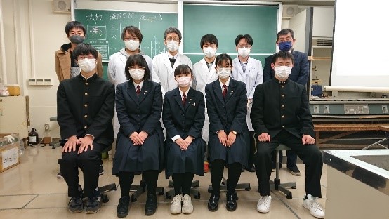 調印式後、本校F組生物班が、崇城大学後藤教授の研究室で実験講座に臨みました。まず、腎不全の原因や患者数などの現状、及び人工透析のしくみについての講義を受けました。その後、ダイアライザー(ろ過装置)について詳しく説明をいたただき、ダイアライザーを用いた人工透析の効率に関する実験を行いました。ダイアライザーを通る血流速度と血液のろ過量との関係について、分光光度計を用いて分析しました。実験には、当大学院の学生達も応援に駆けつけてくれました。また、実験後には、松下副学長から、本校F組生物班が現在取り組んでいる課題研究についてのアドバイスをいただき、大変有効な時間を過ごすことができました。