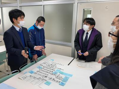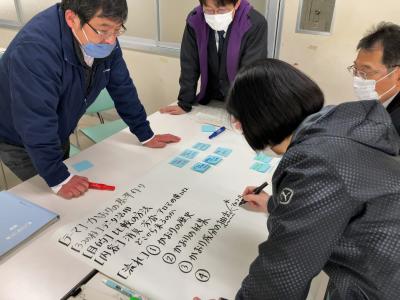 異なる教科の先生でグループを作り、各教科で支援できることを出し合い、1つのテーマについて合教科のアプローチによる授業案を作り、グループ毎に発表を行ないました。カリキュラムマネジメントを取り入れた探究活動の具体的な指導を考える上で、有意義な研修となりました。
