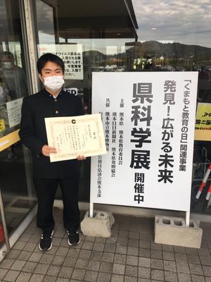 11月5日(木)に第80会科学展の表彰式が植木文化センターで実施。本校、物理部は「光マイクⅡ ~音の“方向”を録れ!~」で熊本博物館賞を受賞、「音響箱の研究」で優賞を受賞しました。「光マイクⅡ ~音の“方向”を録れ!~」は、生徒理科研究発表科でも最優秀賞、日本学生科学賞でも審査員特別賞を受賞しました。今後も、熊本北高校物理部は様々な研究活動を行っていきます。