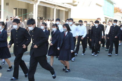 令和2年11月13日(金)に地震・火災避難訓練を実施しました。最初に地震訓練、その後火災避難訓練を行い、生徒・職員はグラウンドへ避難し、集合、点呼を行いました。