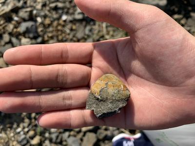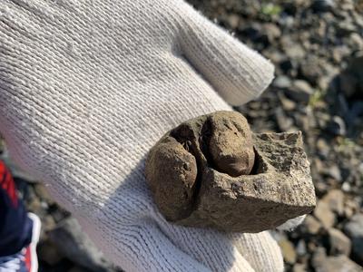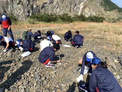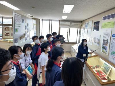 白亜紀資料館の学芸員から御所浦島の地質や展示されている化石についての説明を受けた後、化石採掘を行いました。トリゴニアやゴショライアという二枚貝の状態の良い化石を見つけた生徒もいました。