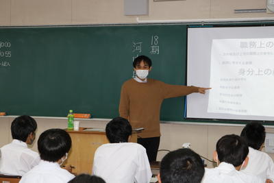 10月17日(土)に1年生の職業観、勤労観育成の一環として職業別講演会を実施しました。今年で7回目になるこの企画は、文理選択を行った1年生にとって進路意識をさらに高める良い機会となっています。今回は12の職業に分かれ、計17名の講師の方々に熱心に講演していただきました。ほとんどの方が北高のOB、OGで、生徒たちも先輩方の熱い思いを受け、真剣な表情で聞いていました。講師の先生方、本当にありがとうございました。