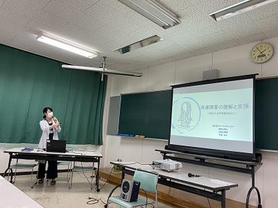 1つ目の教育相談の研修では、スクールカウンセラーの平島先生から「発達障がいの理解と支援〜ASD・ADHDを中心に〜」というテーマで講話をいただきました。自閉症スペクトラムやADHDの方に対する合理的配慮について、具体例を踏まえて確認し、学校での様々な場面でどのような対応をとるべきかについても確認することができました。