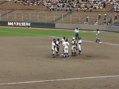 7回表 待望の追加点! 9回裏 マウンドに集まる内野陣