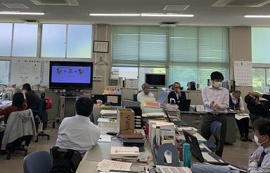 その準備として、5月8日(金)に職員研修を行いました。内容は①特別時間割に基づく学習活動の概要、②スタディサプリの利用法、③Microsoft Formsによる確認テスト・アンケートの作り方 の3つです。休校期間中の生徒の学力向上に向け、オンラインを前提とした学習ツールの活用法を考え合いました。