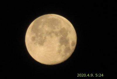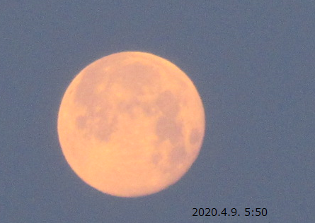 実習教師のミーティングで、日の出前には、月が赤色に見えるという情報を得て、9日の早朝、満月を観察しました。左から右にかけて、日の出の時刻が近付くと、月が赤みを帯びてきました。