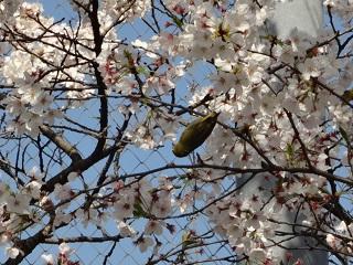 グランドの西側には、第一回生の卒業記念樹も綺麗に咲いています。 4月2日には、教材探しを兼ね実習教師3名で校舎周辺の生物観察を行いました。 写真は桜の蜜を吸うメジロです。 写真はありませんが、ウグイスの鳴き声やモズ、スミレやレンゲ畑など、自然に恵まれた学習環境であることを再確認しました。