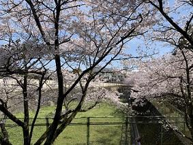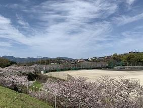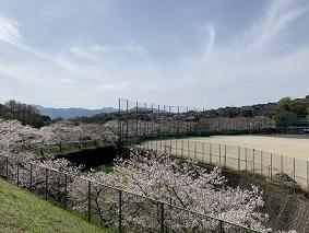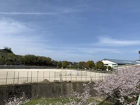 3月28日の北高の様子です。グラウンドの桜が満開となっています。
