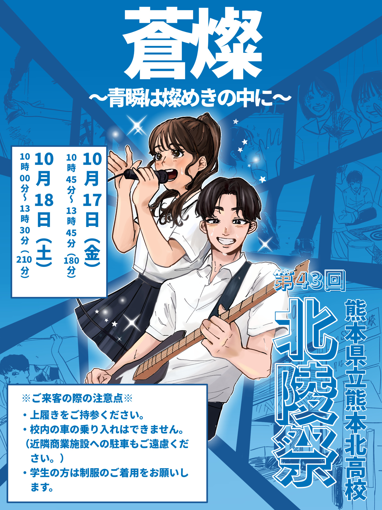北陵祭ならではの多彩なステージや展示、クラス企画など、魅力あふれる企画が盛りだくさんに用意されています。また、今年もたくさんのキッチンカーが来ます。皆さんも燦めく(きらめく)時間を過ごしませんか?多くの方のご来場をお待ちしております。!!!