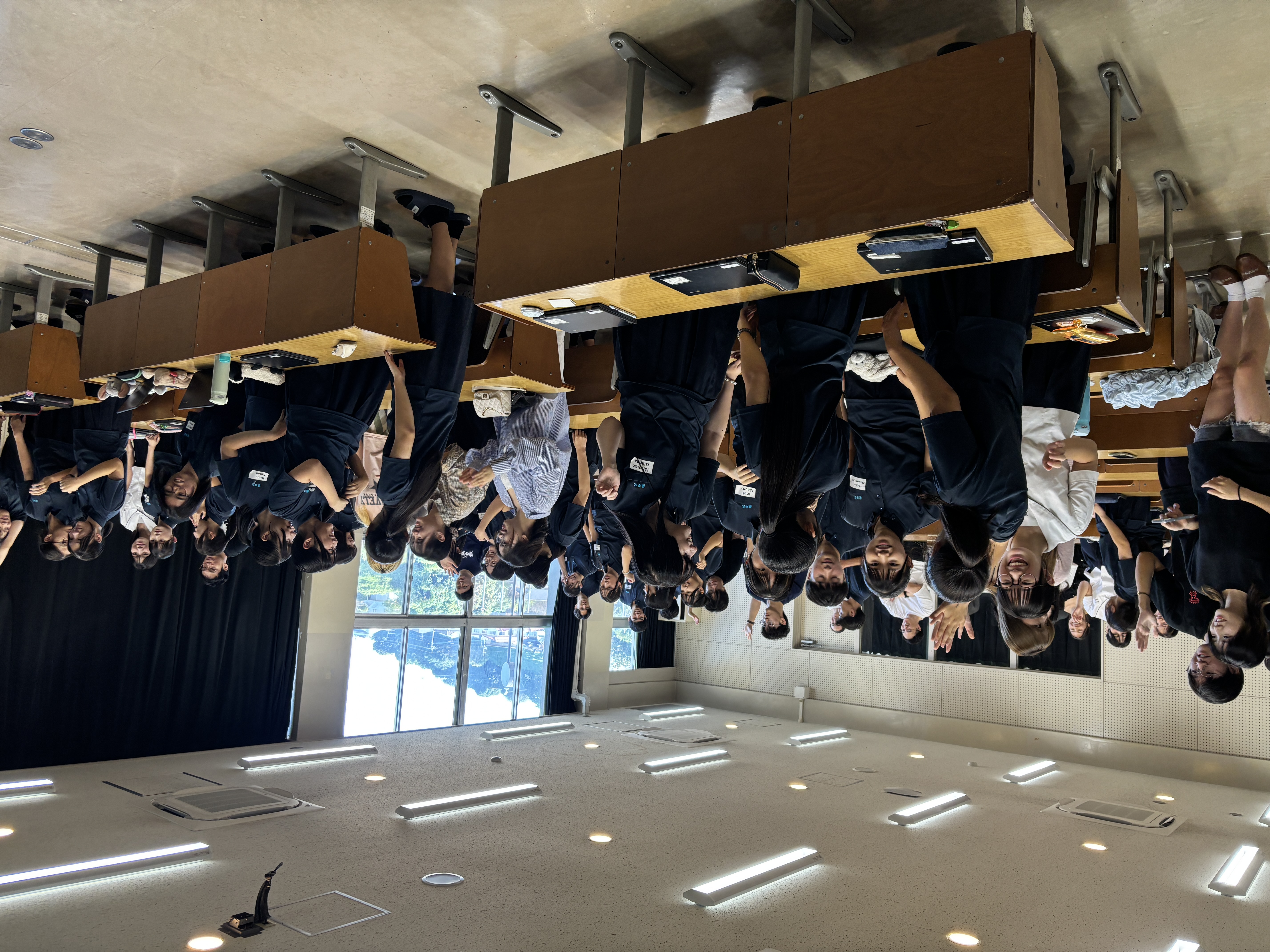 本事業は2022年から異文化交流や語学力を含むコミュニケーション能力向上等を目的に行っています。10月6日(月)に今年度第2回目の交流会を行いました。今回は11月に行われる熊本城へのフィールドワークを前に、熊本学園大学のカーク・マスデン先生より、熊本城に関する英語でのレクチャーを受けました。生徒たちは、熊本で暮らしている自分たちも知らない、熊本城に関する豆知識をクイズ形式で楽しく学びました。レクチャーの後は、6つのグループに分かれ、それぞれのグループの留学生たちの話を聞き、時に質問をしながら交流を深めました。