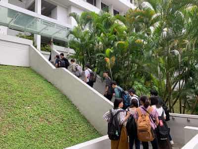 研修4日目となる1月15日(水)は、南洋理工大学(NTU)を訪問しました。午前中は2人の学生によるキャンパスツアーで、講堂や図書館、学生寮や売店など、学生の目線で大学の様々な施設の説明を受け、学食で昼食をとりました。午後は、南洋理工大学の川端雅人先生から、スポーツ心理学の側面から人々がやる気を高め、物事に打ち込む状況を作り出す研究について講義を受け、実際の調査や検証について具体的なお話を聞くことができました。