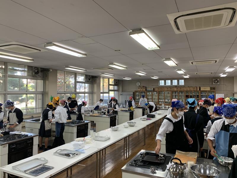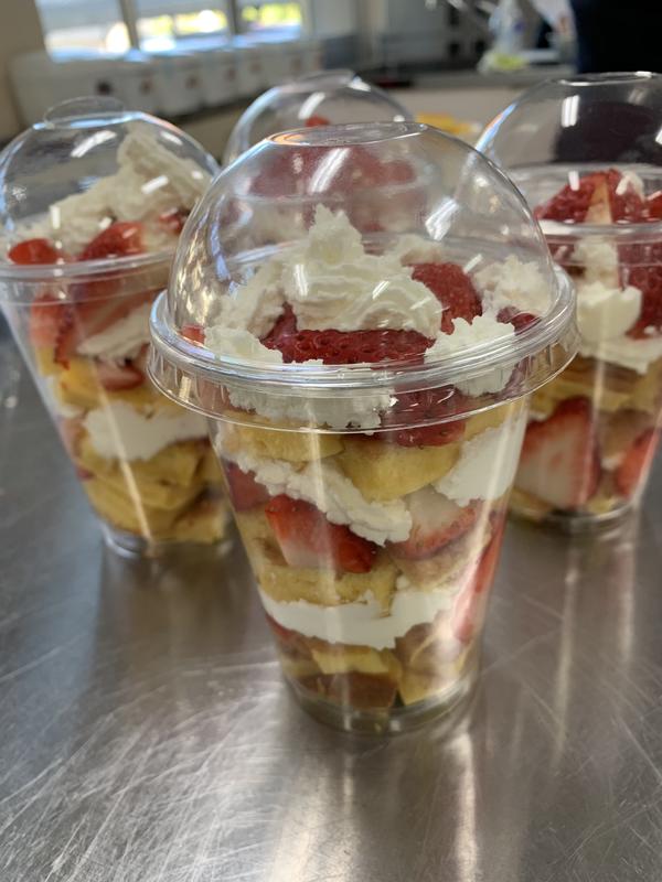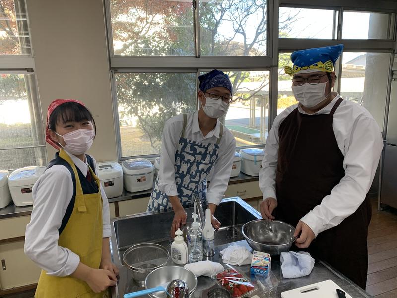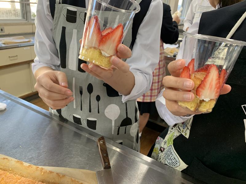 今週の家庭基礎ではスポンジケーキを焼き、イチゴとクリームでトライフルを作りました。