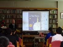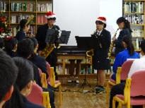 12月3日(火)、本校図書館にて図書委員主催の冬の朗読会が開かれました。 今回は、放送部の皆さんによる『星の王子様』の朗読、吹奏楽部によるサックス四重奏「ガラスの香り」そして本校職員の小林先生によるクリスマス独唱という豪華な内容になりました。図書室が満員になるほどで立ち見の生徒さんもいました。 ひとときの文化の香りを楽しんでいただけたようです。