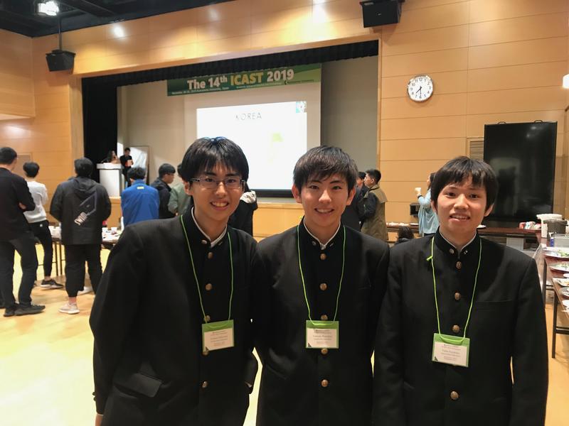 第14回先端科学技術分野学生国際会議(ICAST2019)が熊本大学で、11月28日(木)~29日(金)に開催されました。ICASTは、学生が運営する国際会議で、世界各地から集まった学生と一緒に、英語での研究発表や交流が行われます。今年は、日本開催ということで、本校からは生物部の2年生と1年生が参加してきました。28日のStudent Exchange Partyでは、生徒たちはインドネシアなど海外の学生達と文化の違いなどについて情報交換をすることができました。29日には、General Session のEnvironment/Other issues in society related to science and technologyの分科会で口頭発表してきました。アジアには広く分布する蝶ということもあり、会場からは「なぜその蝶に注目したのか」など複数の意見が出され、質疑応答を通してさらに交流を深めることができました。
