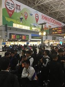 早朝に学校を出発した修学旅行団は、無事に台湾の桃園国際空港に到着しました。先発と後発の2つのグループでの移動でしたが、共に飛行機が遅れ台北から高雄に向かう台湾高速鉄道の列車を変更しました。