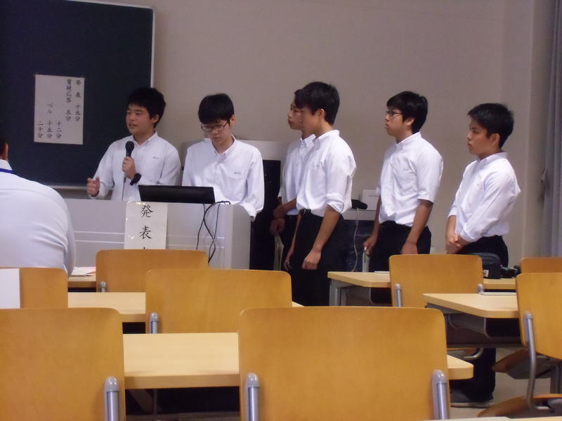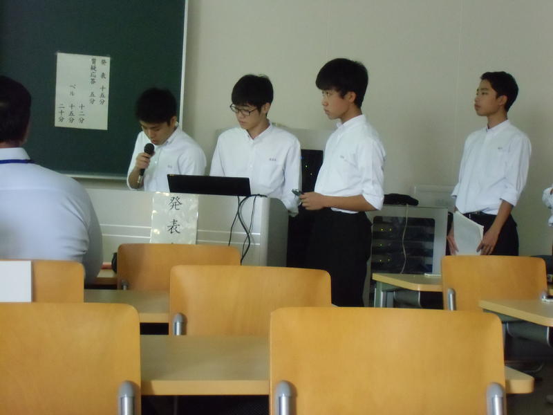物理部門の発表で、本校は1番目の発表でした。緊張しすぎることなく、堂々と発表できていました。今回は全部で8テーマの発表があり、どのテーマも興味深い内容でした。他校の発表を聞き、大いに刺激を受けたようです。