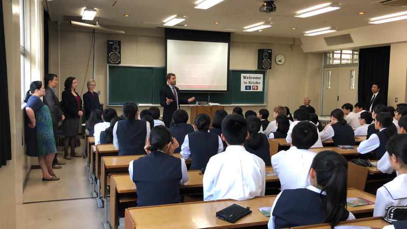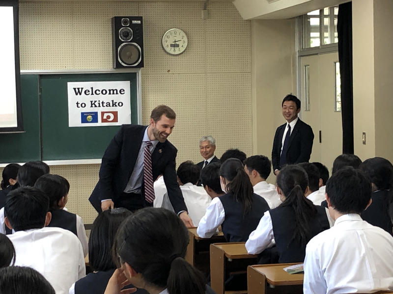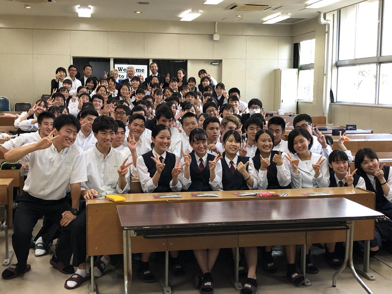 10月21日(月)に、州立モンタナ大学のセス・ボドナー総長及び大学関係者が来校し、本校英語科の生徒に講演をしていただきました。ボドナー氏は、人生をラフティング(急流下り)に例えながら、これからの人生に必要な資質は「好奇心」と「勇気」であるとし、海外留学等を経験し様々な文化や考え方に触れることがとても大切だと話されました。講演後の質疑応答では、多くの生徒から出された質問に、ジョークを交えながらひとつひとつ丁寧に答えていただきました。生徒たちは、モンタナ大学総長の講演を聞くという貴重な機会に恵まれ、とても満足そうでした。