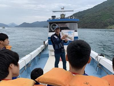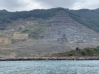 【御所浦島を一周しながら、地層や化石発掘についての説明】