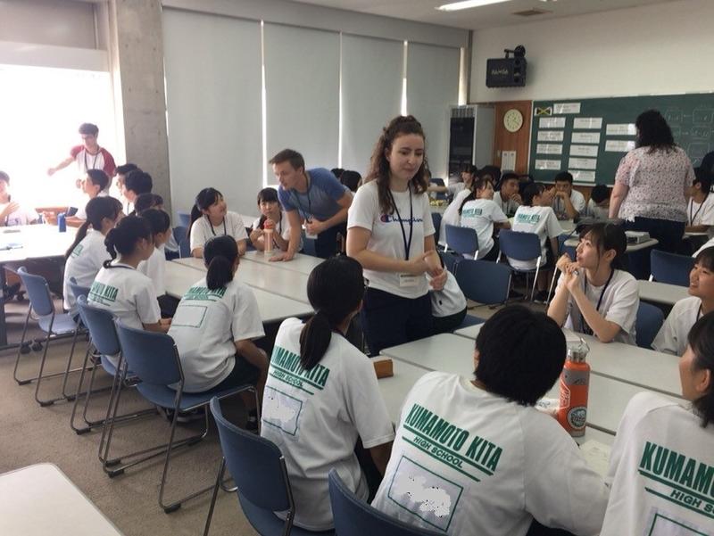 8月23日(金)から1泊2日の日程で、あしきた青少年の家を会場に英語科合宿を行いました。この合宿は、英語科1・2年生全員を対象に、ALTの先生方やクラスメートと寝食を共にしながら英語コミュニケーション力の向上を目的に、毎年実施している研修です。今年度は、県内の10名のALTを講師として迎え、グループ別のワークショップや9月20日(金)、21日(土)に行われる北陵祭での英語劇やステージ発表の練習などを行いました。