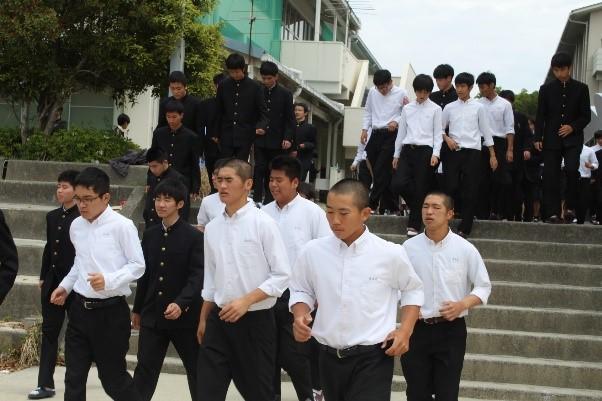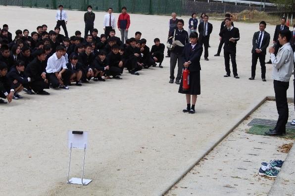 平成31年4月17日(水)に地震・火災避難訓練を実施しました。最初に地震訓練、その後火災避難訓練を行い、生徒・職員はグラウンドへ集合しました。避難放送から点呼、報告まで要した時間は6分26秒でした。