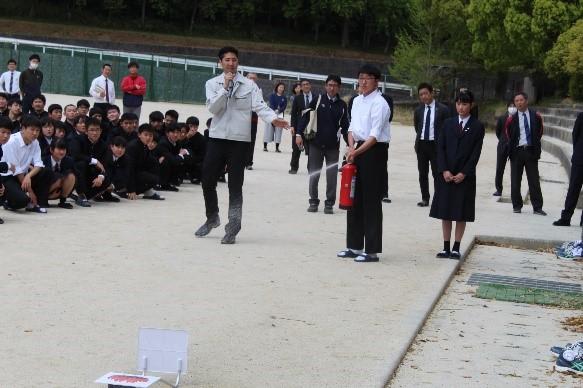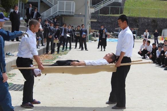 一昨年度が7分台、昨年度が6分弱と11月実施時期と比べ、点呼終了まで若干時間がかかりました。学期初めの訓練で集合に慣れていなかったことなど、課題点が明らかになりました。今回も生徒が学校設定科目「アクティブリサーチⅡ」の課題研究で避難時の混雑を解消するために考えたプログラムを実際に運用し、4分30秒で全校生徒はグラウンドまで避難できました。今回の結果を踏まえてさらに研究を重ねていくなど、今後も普段から防災意識の向上につながるような取り組みを考えていきたいです。
